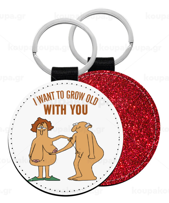 I want to grow old with you, Μπρελόκ Δερματίνη, στρογγυλό ΚΟΚΚΙΝΟ (5cm)