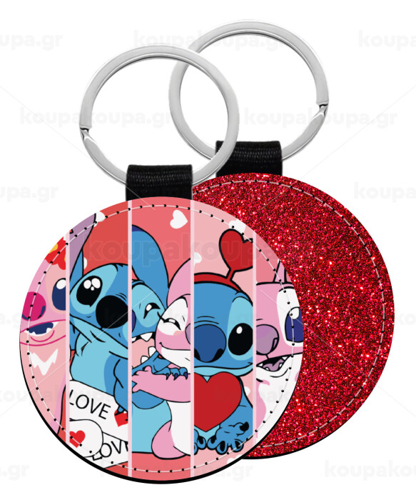 Lilo & Stitch Love, Μπρελόκ Δερματίνη, στρογγυλό ΚΟΚΚΙΝΟ (5cm)