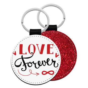 Love forever ∞, Μπρελόκ Δερματίνη, στρογγυλό ΚΟΚΚΙΝΟ (5cm)