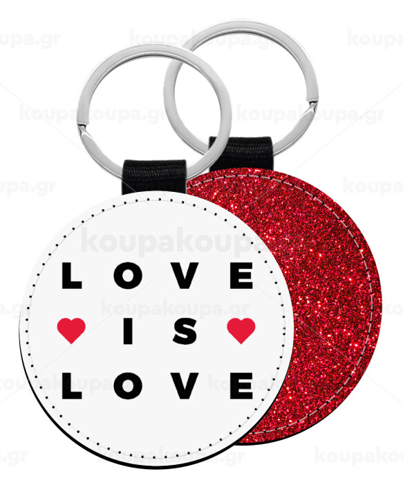 Love is Love, Μπρελόκ Δερματίνη, στρογγυλό ΚΟΚΚΙΝΟ (5cm)