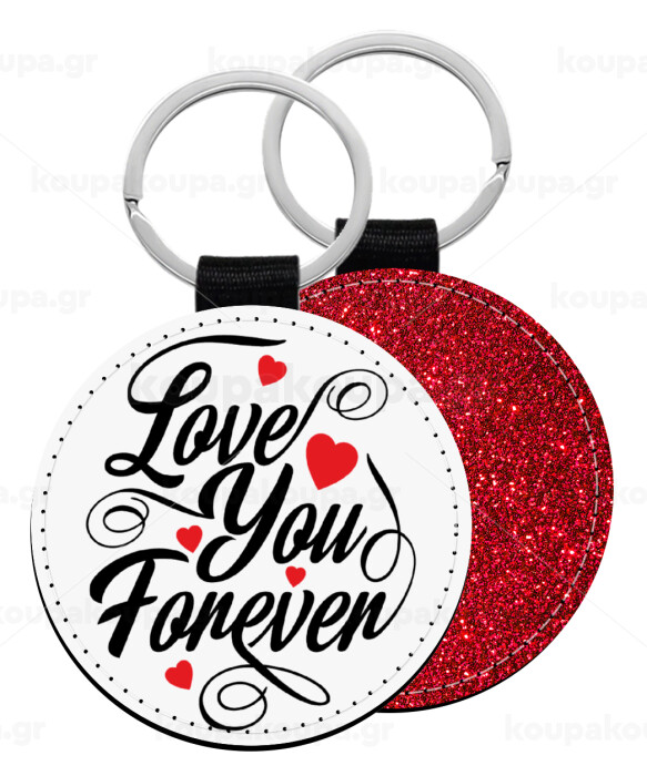 Love you forever, Μπρελόκ Δερματίνη, στρογγυλό ΚΟΚΚΙΝΟ (5cm)