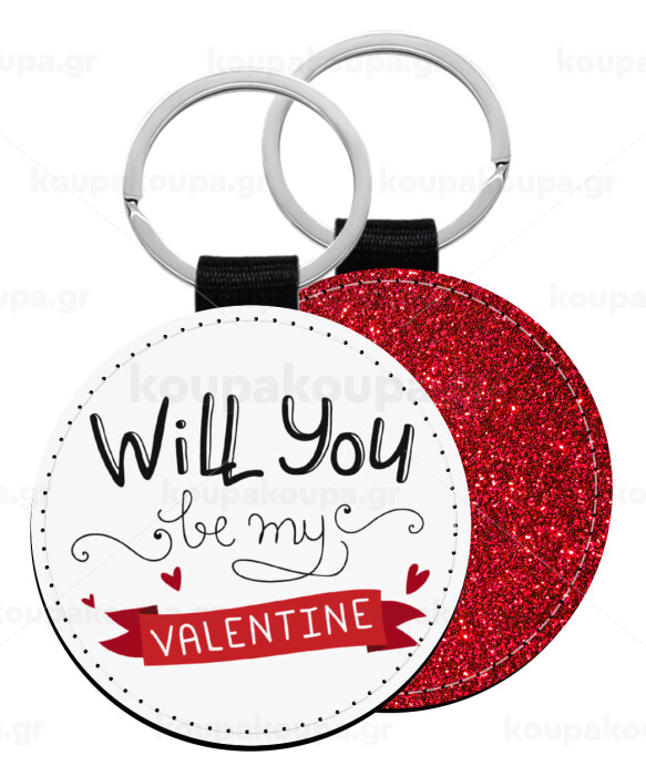 Will you be my Valentine???, Μπρελόκ Δερματίνη, στρογγυλό ΚΟΚΚΙΝΟ (5cm)