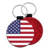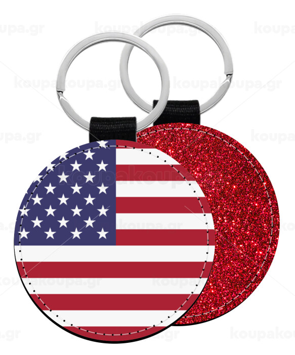 USA Flag, Μπρελόκ Δερματίνη, στρογγυλό ΚΟΚΚΙΝΟ (5cm)