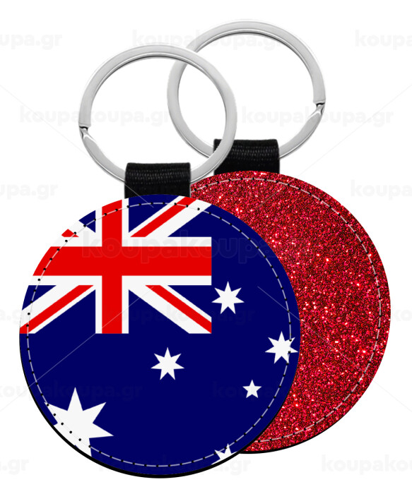 Australia flag, Μπρελόκ Δερματίνη, στρογγυλό ΚΟΚΚΙΝΟ (5cm)