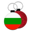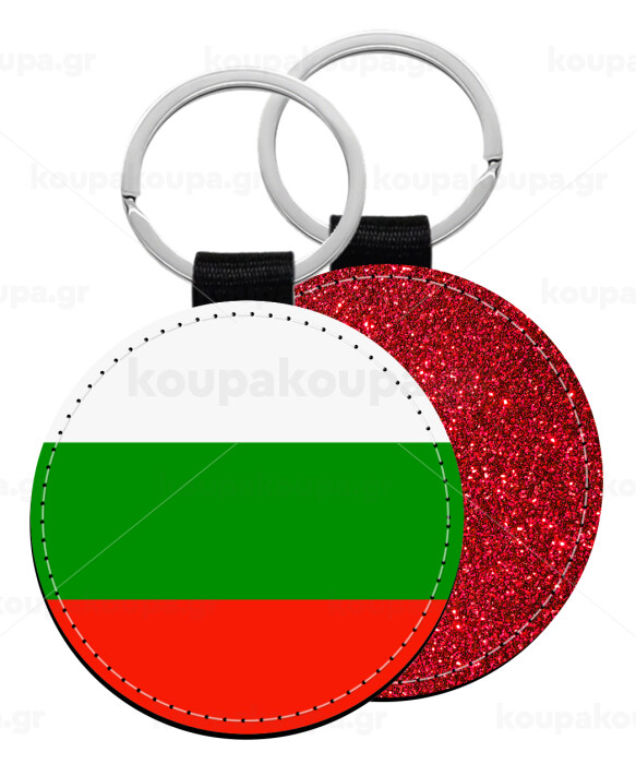 Bulgaria flag, Μπρελόκ Δερματίνη, στρογγυλό ΚΟΚΚΙΝΟ (5cm)