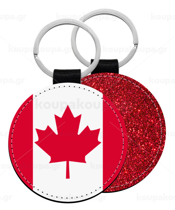 Canada flag, Μπρελόκ Δερματίνη, στρογγυλό ΚΟΚΚΙΝΟ (5cm)