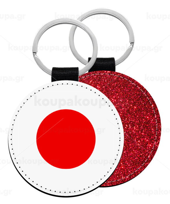 Japan flag, Μπρελόκ Δερματίνη, στρογγυλό ΚΟΚΚΙΝΟ (5cm)