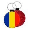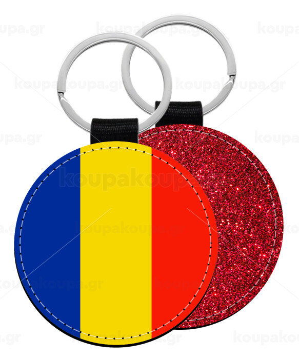 Romania flag, Μπρελόκ Δερματίνη, στρογγυλό ΚΟΚΚΙΝΟ (5cm)