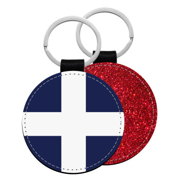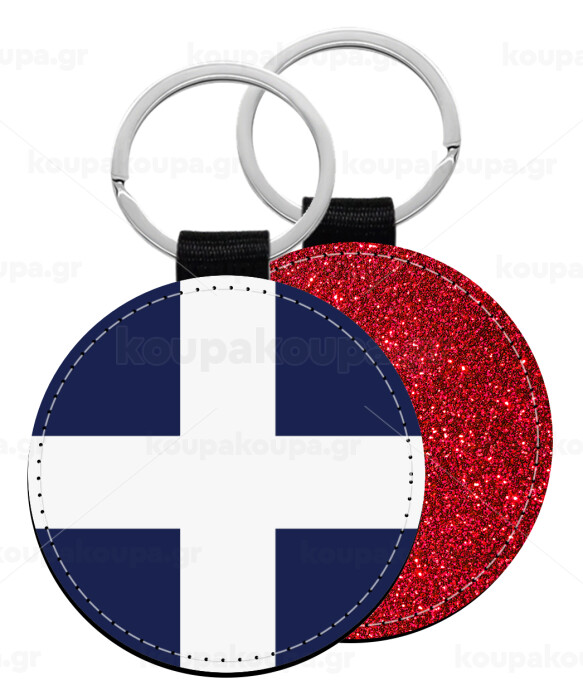 Ελληνική σημαία, Hellas, Μπρελόκ Δερματίνη, στρογγυλό ΚΟΚΚΙΝΟ (5cm)