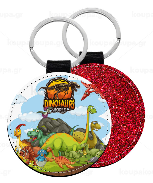 Dinosaur's world, Μπρελόκ Δερματίνη, στρογγυλό ΚΟΚΚΙΝΟ (5cm)