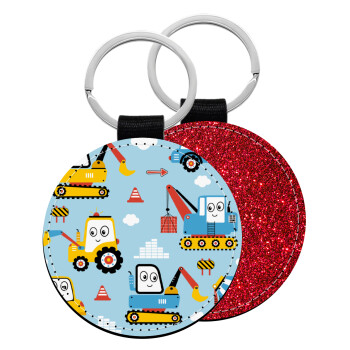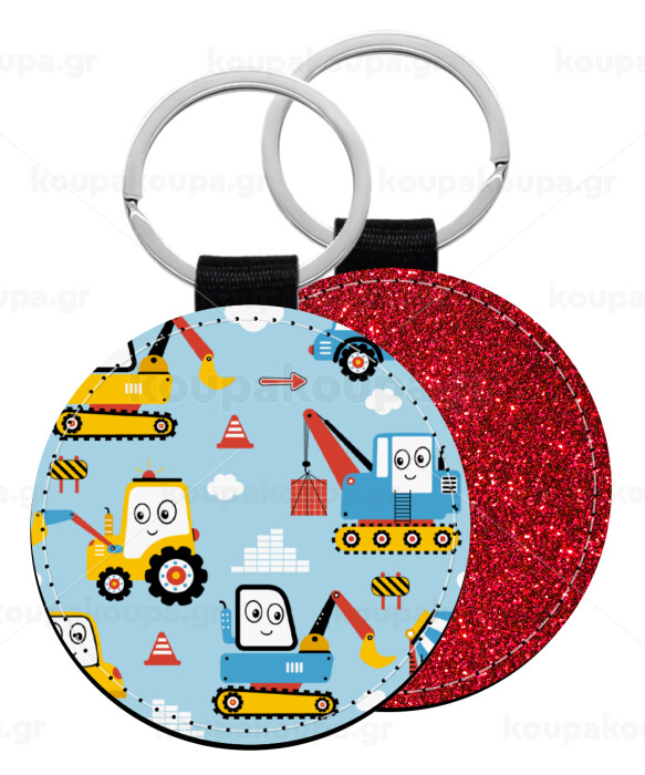 Hand drawing building truck, Μπρελόκ Δερματίνη, στρογγυλό ΚΟΚΚΙΝΟ (5cm)