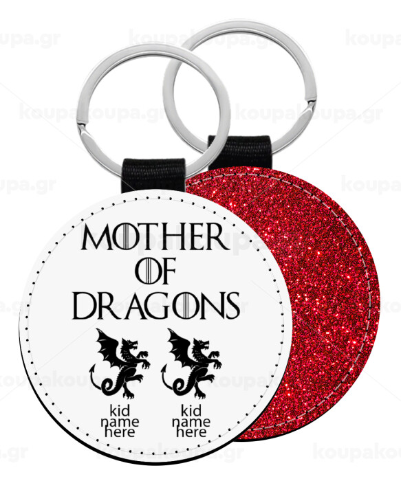 GOT, Mother of Dragons (με ονόματα παιδικά), Μπρελόκ Δερματίνη, στρογγυλό ΚΟΚΚΙΝΟ (5cm)