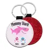 Mommy Shark (με ονόματα παιδικά), Μπρελόκ Δερματίνη, στρογγυλό ΚΟΚΚΙΝΟ (5cm)