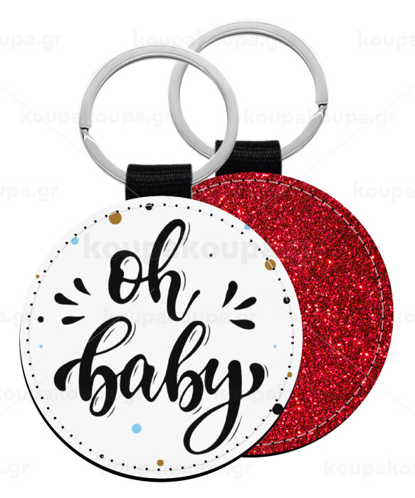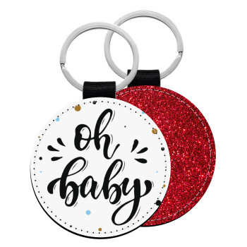 Oh baby, Μπρελόκ Δερματίνη, στρογγυλό ΚΟΚΚΙΝΟ (5cm)