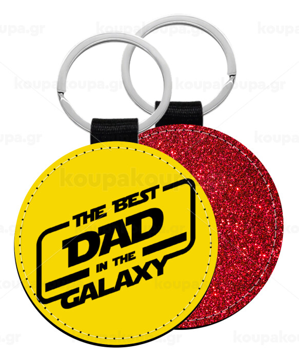 The Best DAD in the Galaxy, Μπρελόκ Δερματίνη, στρογγυλό ΚΟΚΚΙΝΟ (5cm)