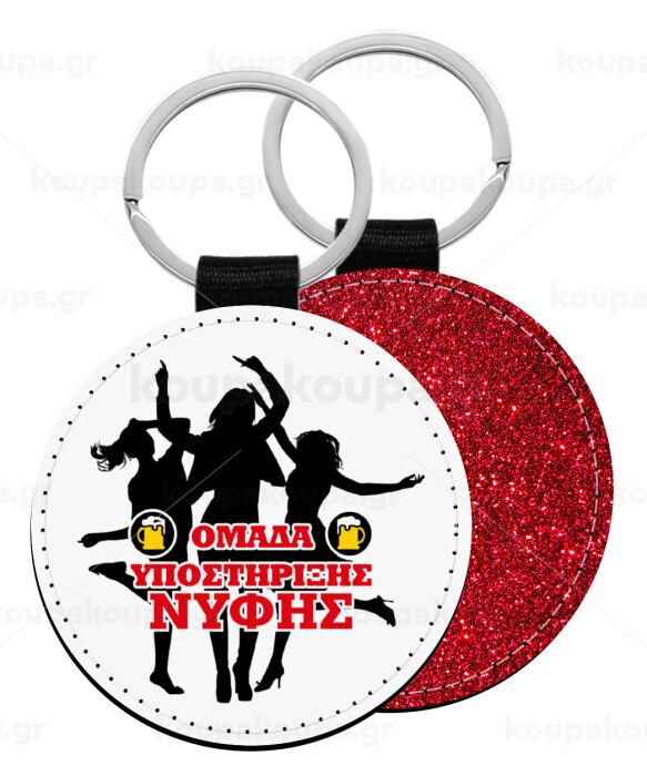 Bachelor Ομάδα υποστήριξης Νύφης, Μπρελόκ Δερματίνη, στρογγυλό ΚΟΚΚΙΝΟ (5cm)