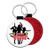 Leatherette keychain with glitter on one side and high resistance leatherette on the other. Safety ring for the keys.