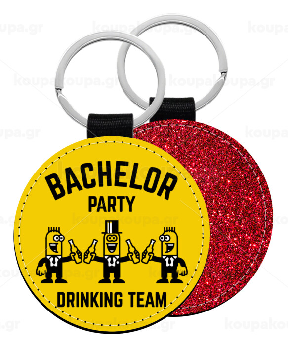 Bachelor Party Drinking Team, Μπρελόκ Δερματίνη, στρογγυλό ΚΟΚΚΙΝΟ (5cm)