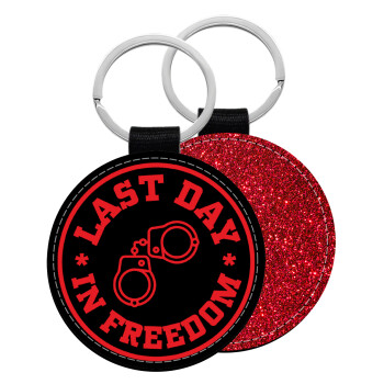 Last day freedom, Μπρελόκ Δερματίνη, στρογγυλό ΚΟΚΚΙΝΟ (5cm)