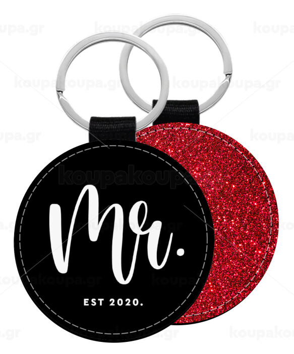 Mr & Mrs (Mr), Μπρελόκ Δερματίνη, στρογγυλό ΚΟΚΚΙΝΟ (5cm)