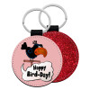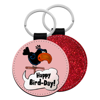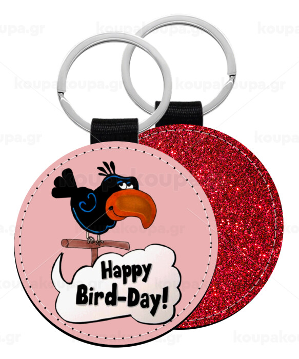 Happy Bird Day, Μπρελόκ Δερματίνη, στρογγυλό ΚΟΚΚΙΝΟ (5cm)