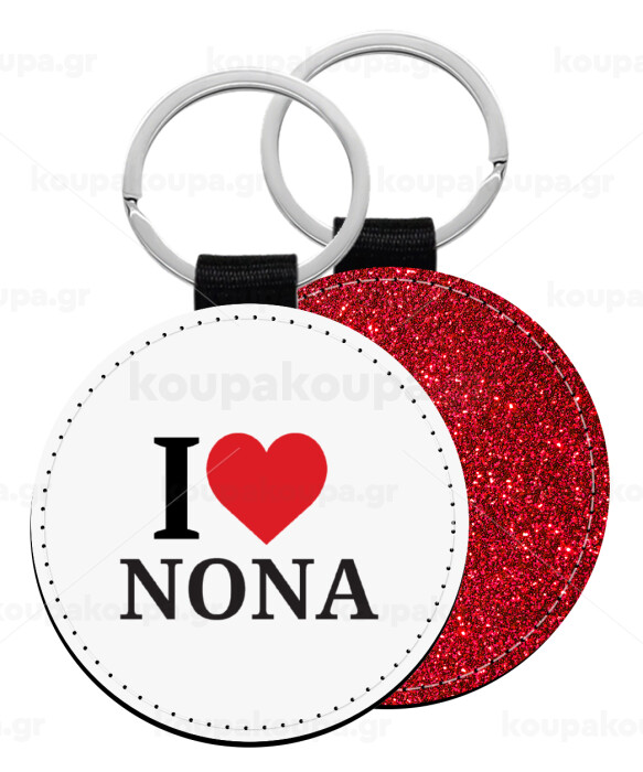 I Love ΝΟΝΑ, Μπρελόκ Δερματίνη, στρογγυλό ΚΟΚΚΙΝΟ (5cm)