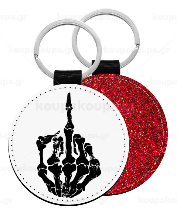 Middle finger, Μπρελόκ Δερματίνη, στρογγυλό ΚΟΚΚΙΝΟ (5cm)