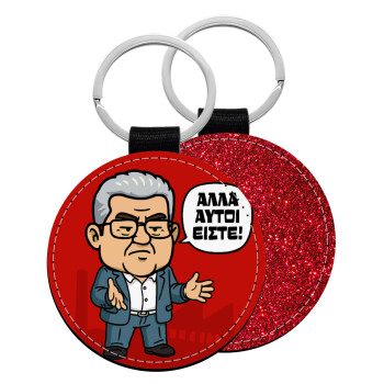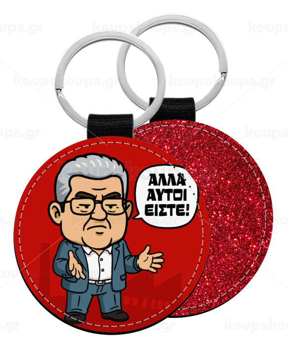 Κουτσούμπας, "Αλλά αυτοί είστε!", Μπρελόκ Δερματίνη, στρογγυλό ΚΟΚΚΙΝΟ (5cm)