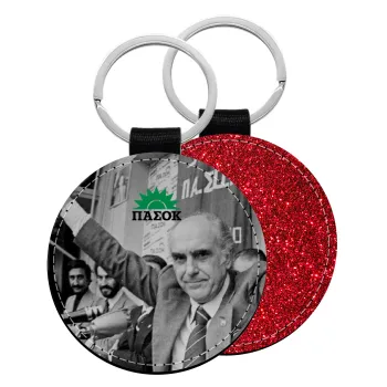 ΠΑΣΟΚ Ανδρέας, Μπρελόκ Δερματίνη, στρογγυλό ΚΟΚΚΙΝΟ (5cm)