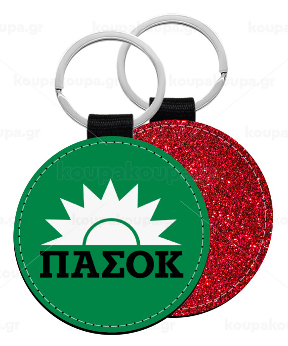 PASOK green, Μπρελόκ Δερματίνη, στρογγυλό ΚΟΚΚΙΝΟ (5cm)