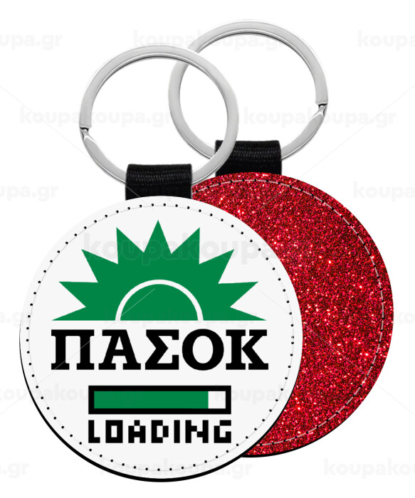 PASOK Loading, Μπρελόκ Δερματίνη, στρογγυλό ΚΟΚΚΙΝΟ (5cm)