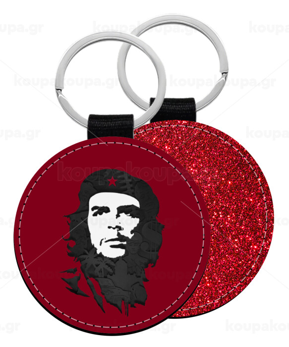 Che Guevara, Μπρελόκ Δερματίνη, στρογγυλό ΚΟΚΚΙΝΟ (5cm)