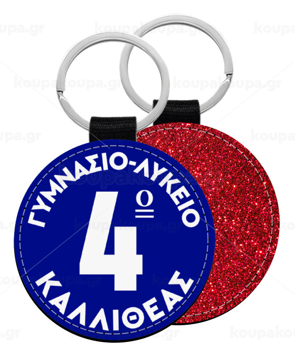 Έμβλημα Σχολικό μπλε κλασικό, Μπρελόκ Δερματίνη, στρογγυλό ΚΟΚΚΙΝΟ (5cm)