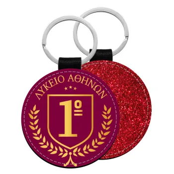 Έμβλημα Σχολικό μπορντό, Μπρελόκ Δερματίνη, στρογγυλό ΚΟΚΚΙΝΟ (5cm)