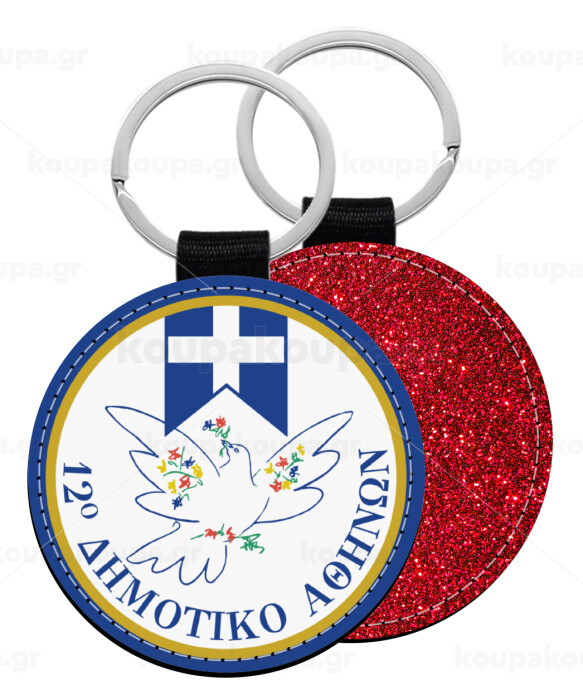 Σχολικό σήμα περιστέρι με δάφνες, Μπρελόκ Δερματίνη, στρογγυλό ΚΟΚΚΙΝΟ (5cm)