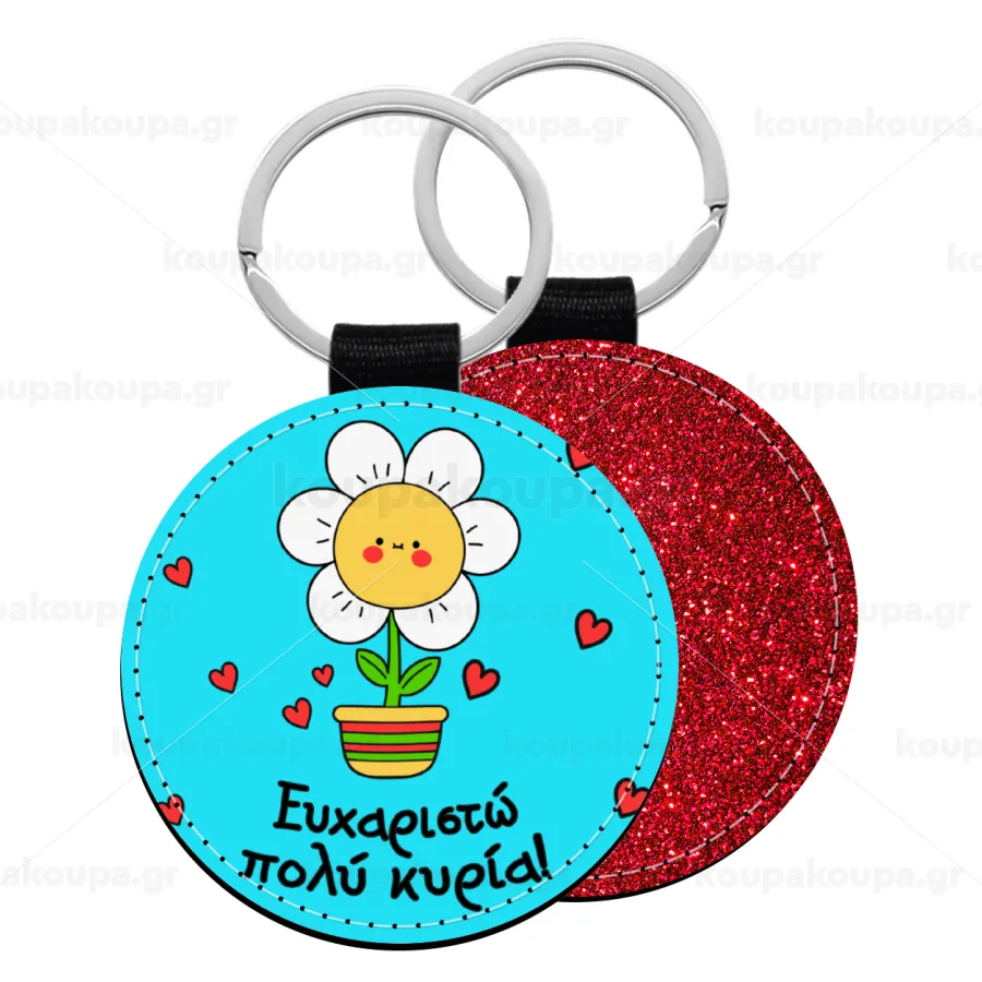 Ευχαριστώ πολύ κυρία!!!, Μπρελόκ Δερματίνη, στρογγυλό ΚΟΚΚΙΝΟ (5cm)