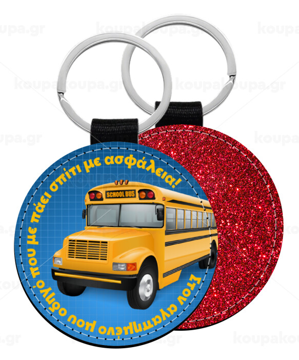 Στον αγαπημένο μου οδηγό σχολικού!, Μπρελόκ Δερματίνη, στρογγυλό ΚΟΚΚΙΝΟ (5cm)