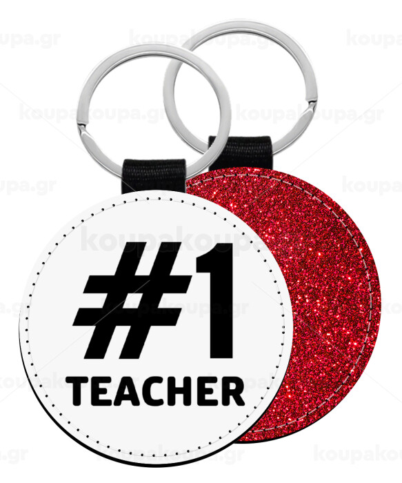 #1 teacher, Μπρελόκ Δερματίνη, στρογγυλό ΚΟΚΚΙΝΟ (5cm)