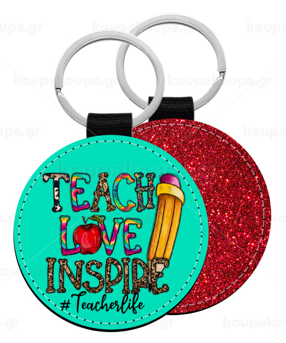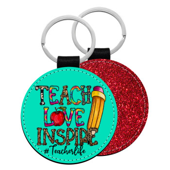 Teach, Love, Inspire, Μπρελόκ Δερματίνη, στρογγυλό ΚΟΚΚΙΝΟ (5cm)
