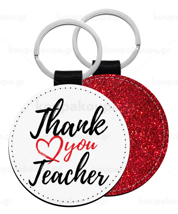 Thank you teacher, Μπρελόκ Δερματίνη, στρογγυλό ΚΟΚΚΙΝΟ (5cm)