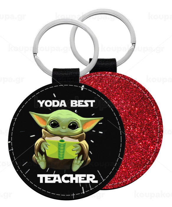 Yoda Best Teacher, Μπρελόκ Δερματίνη, στρογγυλό ΚΟΚΚΙΝΟ (5cm)
