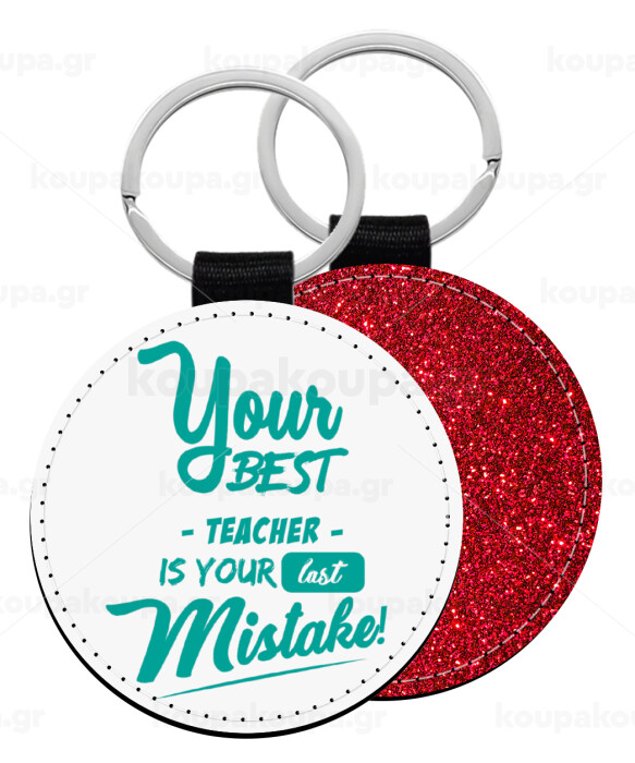 Your best teacher is your last mistake, Μπρελόκ Δερματίνη, στρογγυλό ΚΟΚΚΙΝΟ (5cm)