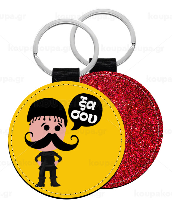 Κρητικός "Ξα σου", Μπρελόκ Δερματίνη, στρογγυλό ΚΟΚΚΙΝΟ (5cm)