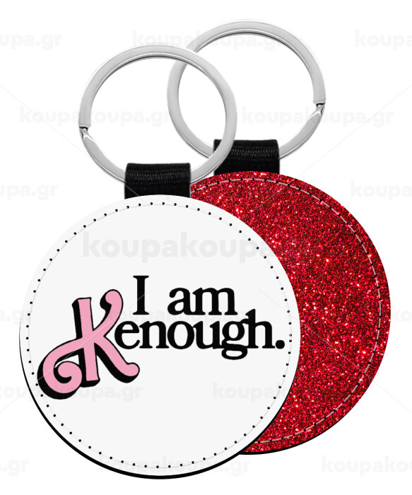 Barbie, i am Kenough, Μπρελόκ Δερματίνη, στρογγυλό ΚΟΚΚΙΝΟ (5cm)