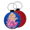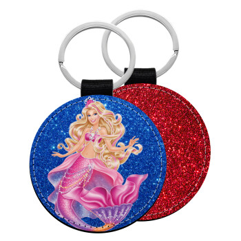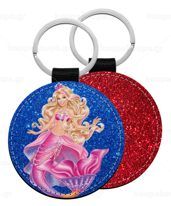Barbie mermaid blue, Μπρελόκ Δερματίνη, στρογγυλό ΚΟΚΚΙΝΟ (5cm)