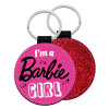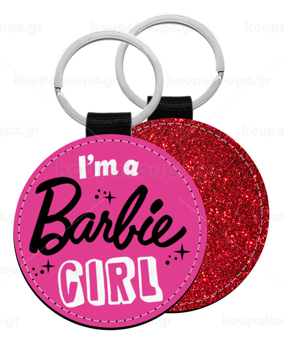I'm Barbie girl, Μπρελόκ Δερματίνη, στρογγυλό ΚΟΚΚΙΝΟ (5cm)