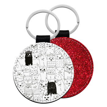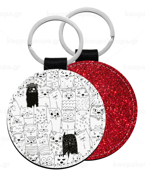 Γάτες γραμμικό σχέδιο, Μπρελόκ Δερματίνη, στρογγυλό ΚΟΚΚΙΝΟ (5cm)