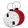 Leatherette keychain with glitter on one side and high resistance leatherette on the other. Safety ring for the keys.