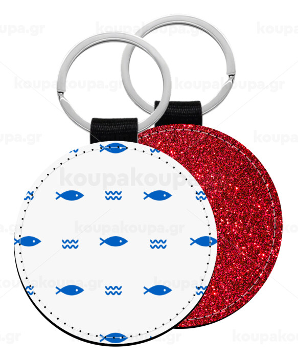 Fishing, Μπρελόκ Δερματίνη, στρογγυλό ΚΟΚΚΙΝΟ (5cm)