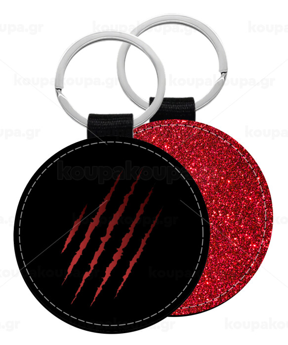 Claw scratch, Μπρελόκ Δερματίνη, στρογγυλό ΚΟΚΚΙΝΟ (5cm)